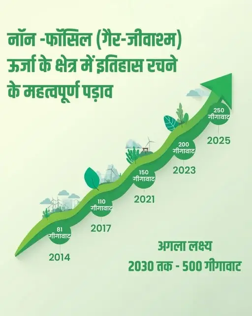 2014 में 81 गीगावाट से 2025 में 250 गीगावाट तक का सफर! ये है Narendra Modi जी के नेतृत्व की ताकत, जिसने ग्रीन एनर्जी में भारत को नई ऊंचाइयों पर पहुंचाया।