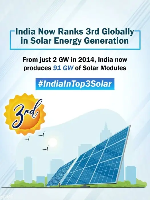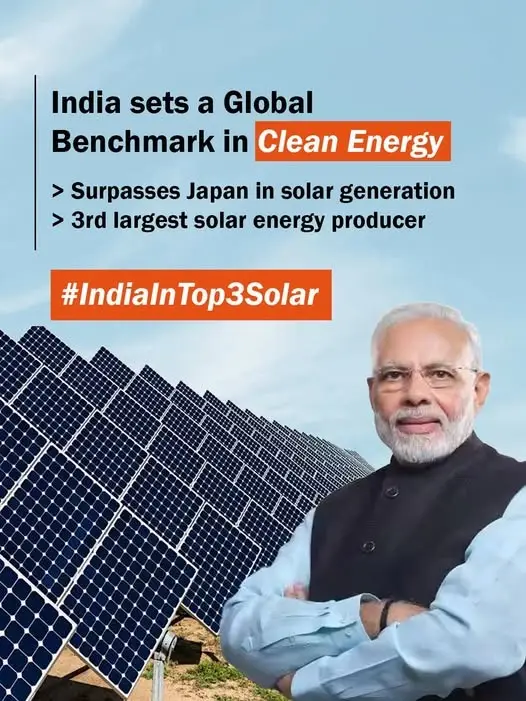 Our solar energy push has placed India 3rd in the world, ahead of Japan. A clear reflection of bold leadership and national willpower!